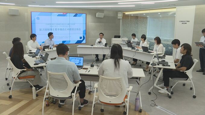 柔軟な発想を取り入れ業務の効率化を図ろうと、18日、山口県の村岡知事と若手職員が意見交換をしました。