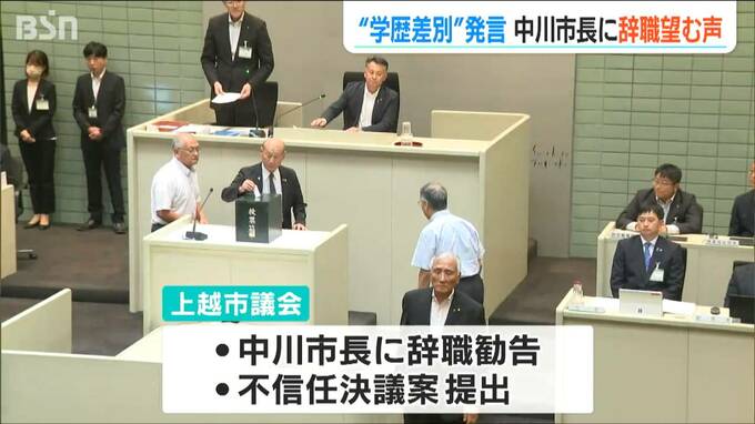 学歴差別ともとれる発言をして問題となっている新潟県上越市の中川幹太市長について、18日の上越市議会でも“辞職”を望む厳しい声が上がっています。