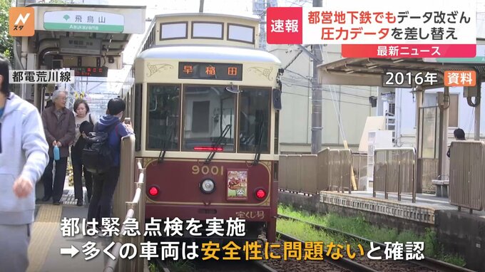 東京都はさきほど、都営地下鉄と都電荒川線の車両で、車輪の組み立て作業のデータが改ざんされていたと明らかにしました。東京都によりますと、都営地下鉄三田線と新宿線、大江戸線、都電荒川線のあわせて156の車…