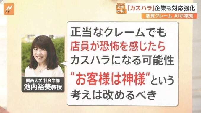 池内教授は「正当なクレームであっても、店員が恐怖を感じたら“カスハラ”になる可能性がある。“お客様は神様”という考えを改めるべき」と話しています。