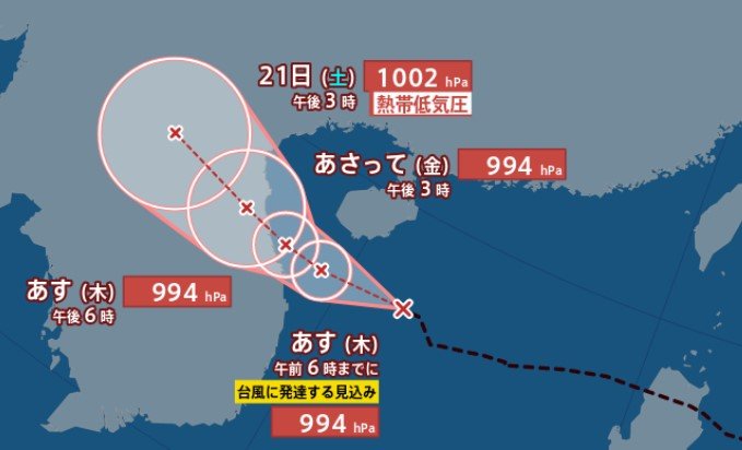 【台風情報 18日午後8時更新】南シナ海の熱帯低気圧はあす午前3時までに台風へ【雨風シミュレーション】台風14号まもなく沖縄地方に最接近 南大東村で最大瞬間風速31.5メートル観測 チューリップテレビ 2024年9月18日(水) 20:13 国内 天気 南シナ海の熱帯低気圧は台風15号に発達へ 南シナ海の熱帯低気圧はあす19日の午前6時までに台風へ発達する見込みです。18日午後6時現在、1時間に20kmの速さで西北西へ進んでいます。