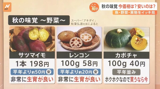 秋の味覚 今の価格は?安いのは? 魚・野菜・果物をイッキ見!
