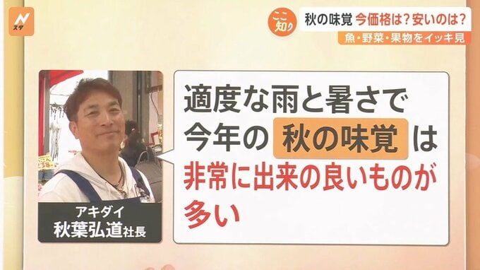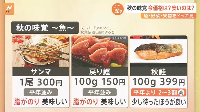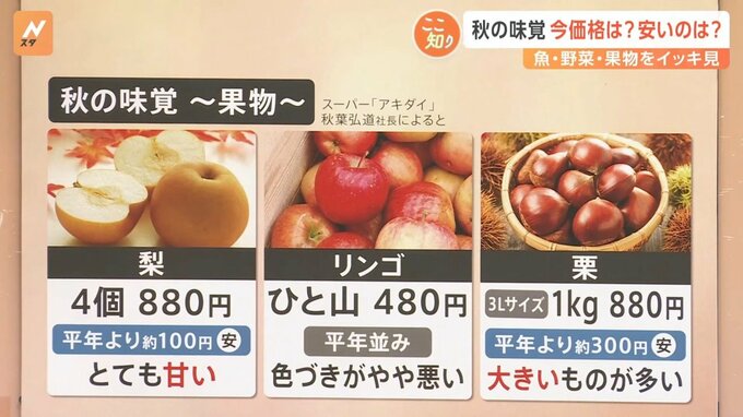 他にもいろいろな秋の味覚の価格帯を見ていきたいと思います。スーパーアキダイの秋葉弘道社長に聞きました。