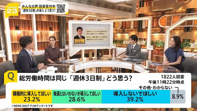 NEWS DIGアプリでは『週休3日』について「みんなの声」を募集しました。