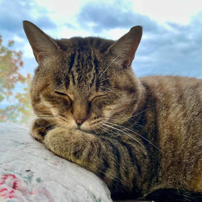 最後は、「今月も母から実家の猫の様子が送られてきた」と、可愛らしい実家の愛猫の写真をアップしました。