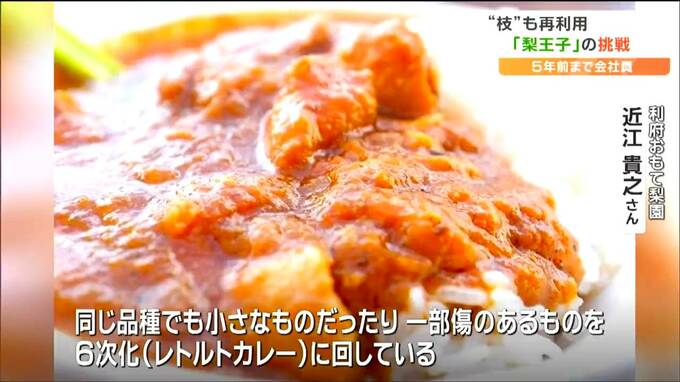 近江さんの活動はナシの栽培だけに留まりません。地域おこし協力隊員だったときには、傷物や規格外で出荷の難しいナシに着目。ナシのすり身を使ったレトルトカレーを考案しました。