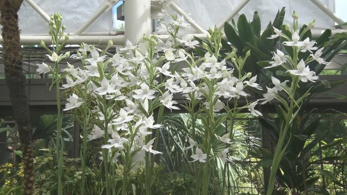 新しいラン「ペクタベナリアホワイトグリフィン」は今月22日まで熱帯ドリームセンターで鑑賞することができます。(北部通信員 岸本幸平)
