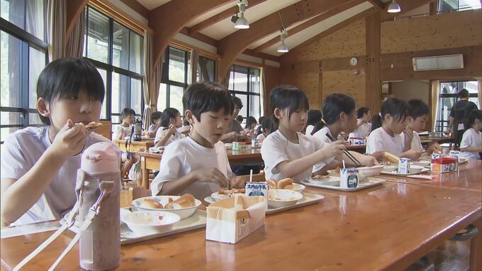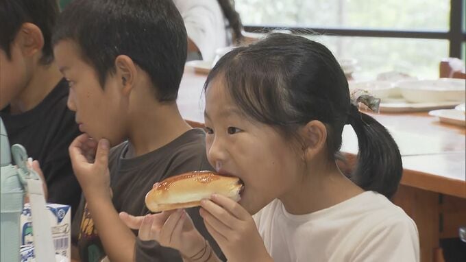 三重県大台町の宮川小学校。19日の給食にはコッペパンなどが出ましたが、大台町の給食でパンが出るのはことし4月以来です。