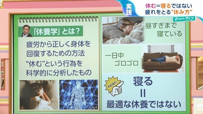 『休養学』とは、疲労から正しく身体を回復するための方法。“休む”という行為を科学的に分析したものです。