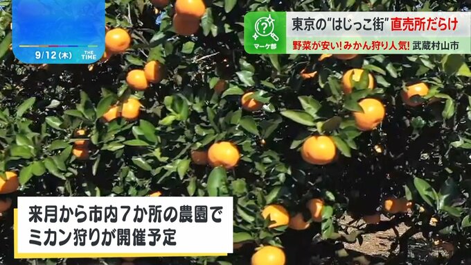 埼玉につながる丘陵地では「東京狭山みかん」の生産もさかんで、10月から市内7か所の農園でミカン狩りが始まる予定です。