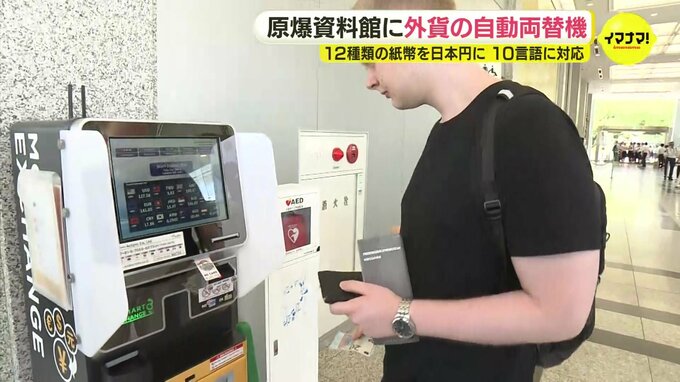 外貨の自動両替機が新たに設置されたのは、原爆資料館の東館1階です。英語や中国語など10の言語に対応していて、ドルやユーロのほか、中国の人民元や韓国のウォンなど、あわせて12種類の紙幣を日本円に交換できます。