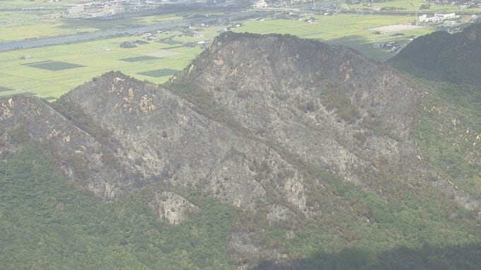 山肌はあらわになり、山頂まで焼け焦げているのが分かります。