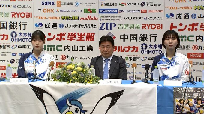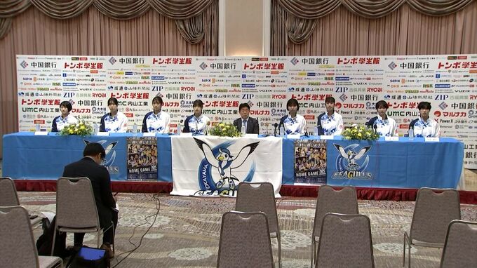 岡山シーガルズの河本監督と選手が新シーズン開幕を前に記者会見に臨みました。