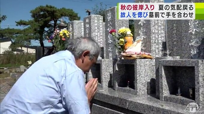 19日は秋の彼岸の入りです。青森県むつ市の寺では、午前中から墓参りに訪れる人の姿がみられ、先祖の墓前に手を合わせるなどして故人を偲んでいました。むつ市大畑町の大安寺には、午前中から墓参りに訪れる人の姿…