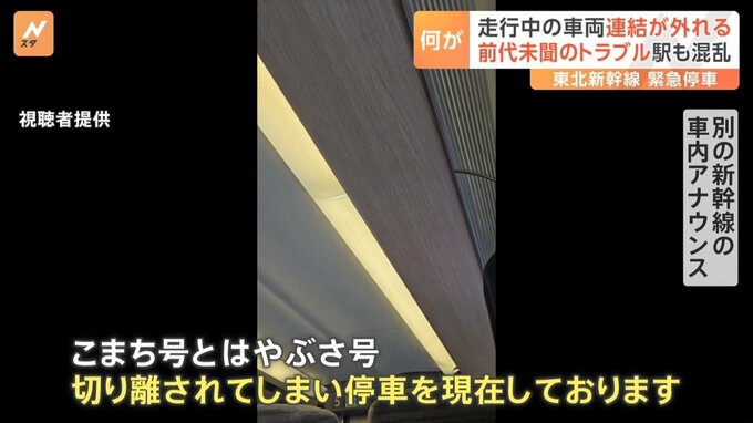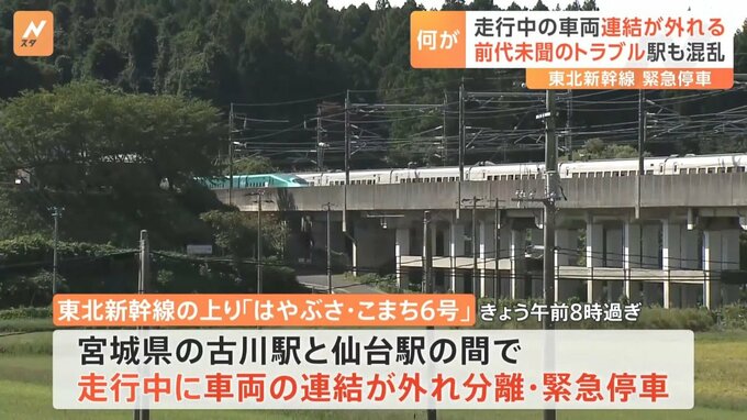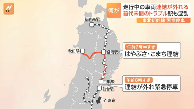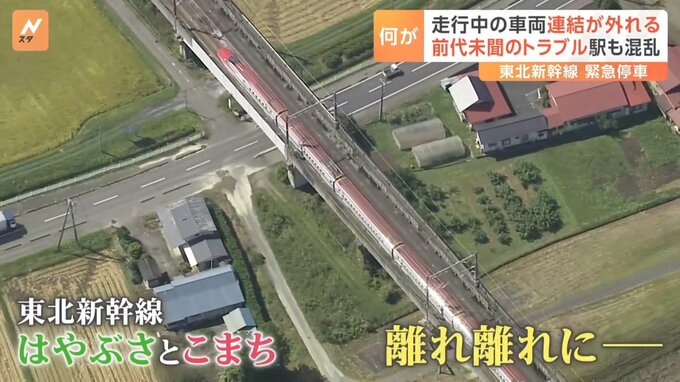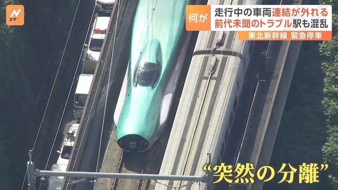 東北新幹線で車両の連結部分が走行中に外れて緊急停車し、一時運転を見合わせました。大きな混乱をもたらした前代未聞のトラブル…何が原因なのでしょうか?