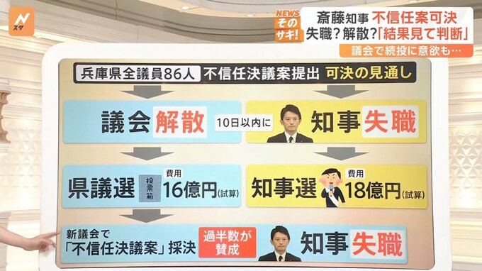 斎藤知事の不信任案可決…議会解散?知事失職?