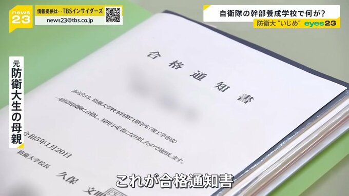 こう話すのは、2023年、まさにこの入校式のときに防衛大に入った男性と母親です。