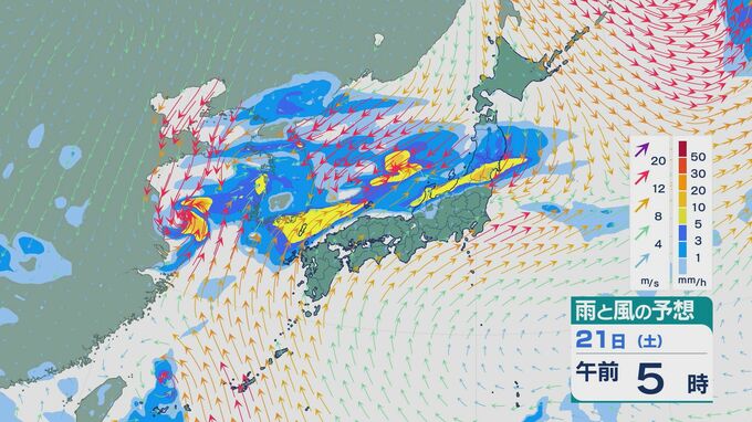 週末、3連休にかけての雨と風の予想です。21日は前線に向かって暖かく湿った空気が流れ込み、北陸など日本海側で雨が強く降りそうです。