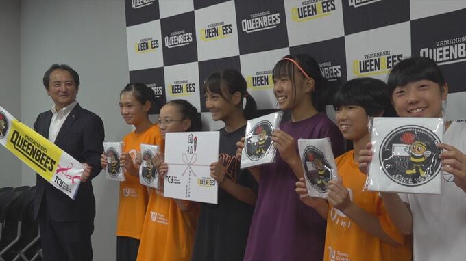 子どもたちに一流のプレーを見てもらおうと、トヨタカローラ山梨がミニバスケットボールの選手たちに山梨クィーンビーズの観戦チケットを贈りました。