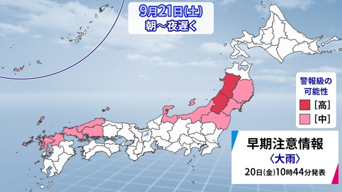 なぜ?台風14号「プラサン」日本へ向けて急カーブ 「台風としての寿命が延びたから」 温帯低気圧に変わった後も発達し… 大雨のおそれ 最新進路・雨風シミュレーション 【台風情報】 CBCテレビ 2024年9月20日(金) 20:59 国内 天気 警報級の雨風の予想 まず、警報級の「風」の予想です。22日(日)を中心に、暴風に警戒が必要です。 「雨」は、21日(土)~23日(月)にかけて警戒が必要です。 ただ、この雨は季節を一歩、秋へ進めます。