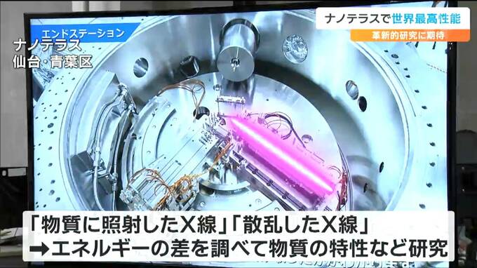 仙台市青葉区にある次世代放射光施設「ナノテラス」に物質内のエネルギー変化を世界で最も詳細に見られる装置が整備されました。革新的な研究成果が出ると期待されています。小笠原悠記者:「こちらが整備された測…