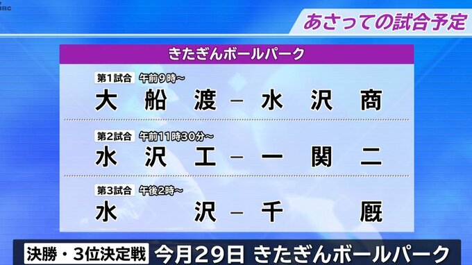 21日きたぎんボールパークで予定されていた1回戦3試合は、雨のためあさってに順延になりました。