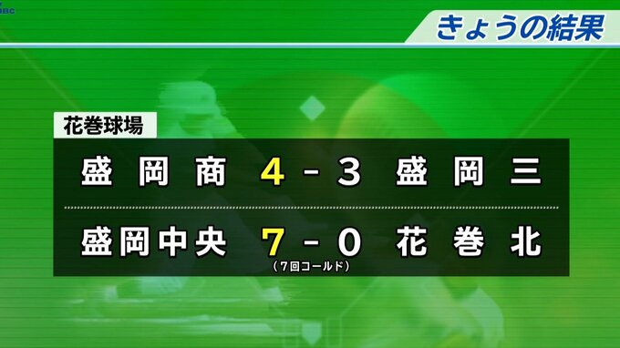 盛岡中央が7回コールドの7対0で花巻北を下しました。