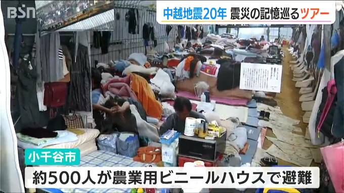 2004年に発生した中越地震では、県内で12万棟以上が被害を受け、68人が犠牲となりました。地震発生当初には、およそ500人が身を寄せ合い、農業用のビニールハウスで避難生活を送っていたという話など、参加者は熱心に耳を傾けました。