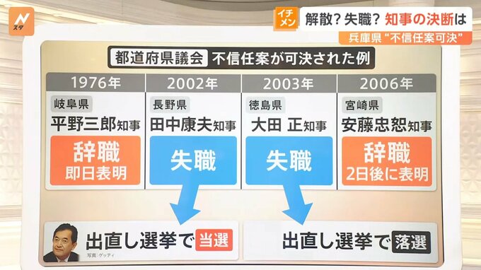 過去に、都道府県議会で不信任決議案が可決された知事は4人います。