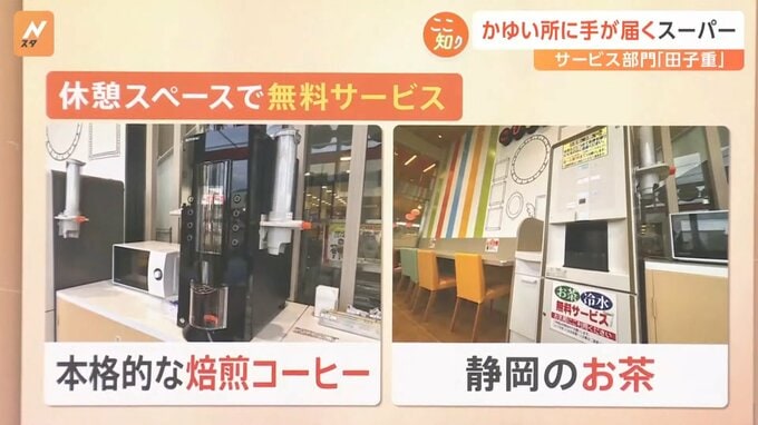 さらに、本格的な焙煎コーヒー、静岡のお茶を休憩スペースで無料でサービスしています。
