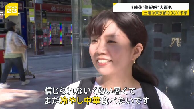 3連休“警報級”大雨も 土曜は東京都心36℃予想