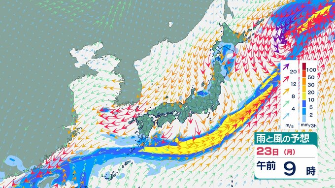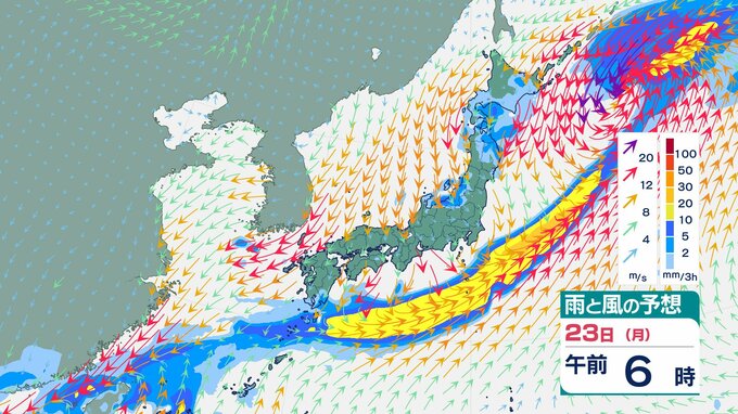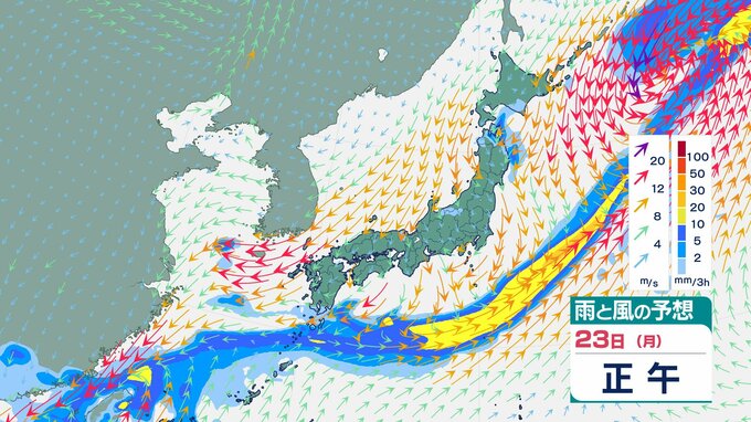 【北陸 大雨情報】“警報級の大雨”の地域拡大のおそれ あすは台風14号から変わった温帯低気圧が接近する見込み 雷を伴い断続的に“激しい雨”が降る予想 あす午前6時まで24時間予想降水量 新潟150ミリ 石川150ミリ 富山80ミリ 福井80ミリ【雨風シミュレーション】 チューリップテレビ 2024年9月21日(土) 09:00 国内 天気 雨と風のシミュレーション23日(月)