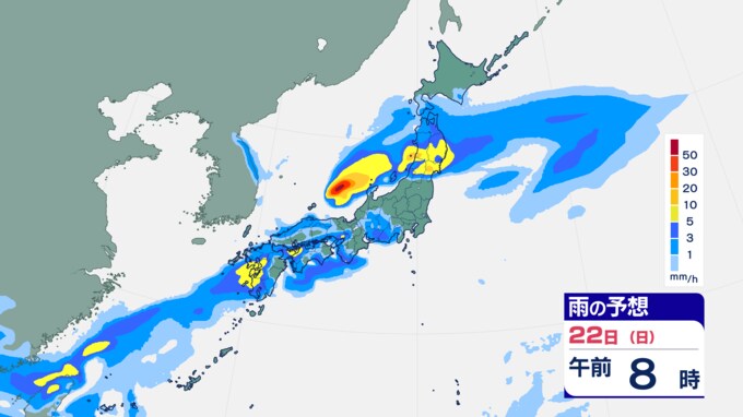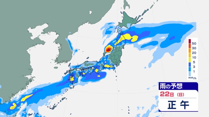 西日本から東北地方の広い範囲で22日にかけて、雷を伴った非常に激しい雨が降り大雨となる所があるでしょう。