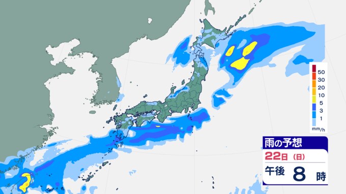 西日本から東北地方では22日にかけて、非常に強い風の吹く所があるでしょう。