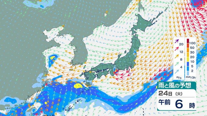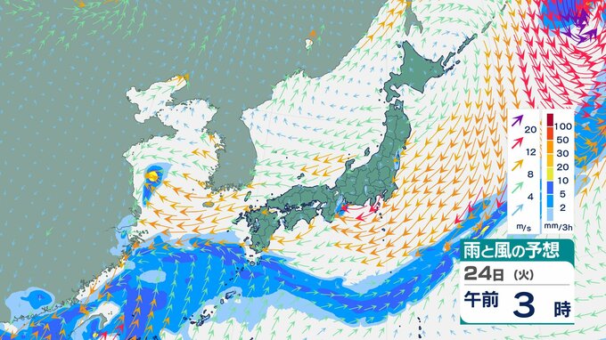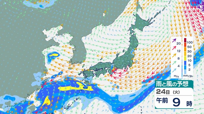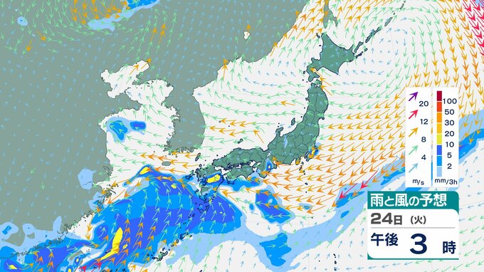 【大雨情報】西日本から東北地方の広い範囲であすにかけて雷を伴った非常に激しい雨が降り大雨のおそれ aあす午前6時までの24時間予想降水量 九州北部180ミリ 東北150ミリ 北陸150ミリ 中国150ミリ 四国150ミリ 東海地方100ミリ【雨風シミュレーション】 チューリップテレビ 2024年9月21日(土) 07:00 国内 天気 雨と風のシミュレーション 24日(火)午後3時まで