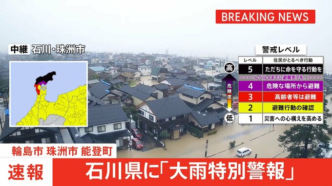 「大雨特別警報」が石川県能登地方に発表されました。これらの地域では、経験したことのないような大雨が降っているか、今後も降り続くと予想され、重大な災害の発生するおそれが非常に高くなっています。すでに災…