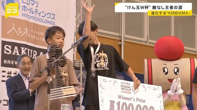 そして、初優勝を果たした川本選手に五十嵐選手は、トロフィーを掲げるようジェスチャーをしました。