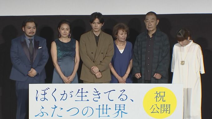 吉沢亮さん主演の映画「ぼくが生きてる、ふたつの世界」公開記念舞台挨拶が行われ、共演の忍足亜希子さん、今井彰人さん、烏丸せつこさん、でんでんさん、呉美保監督らとともに登壇しました。
