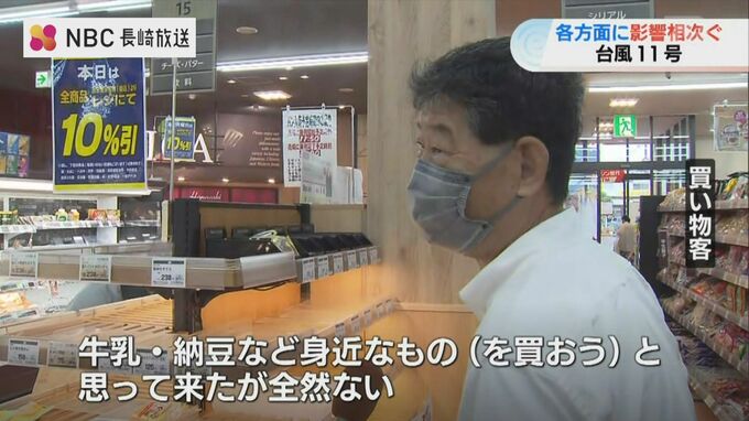 台風11号の接近で長崎県内では生活に影響が出ています。
