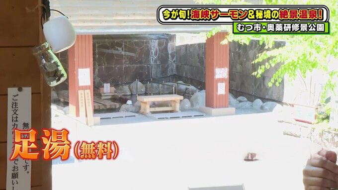 そして、サーモン丼を食べながら外の景色に目を向けると、“足湯”が見えるではありませんか!