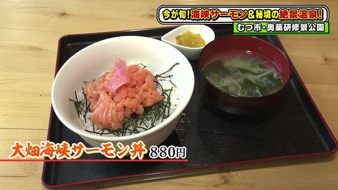 2人がいただいたのは、『大畑海峡サーモン丼』(880円)。【※2024年9月現在は900円に変更】
