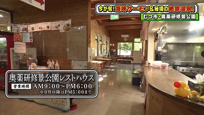 林道を抜けてやってきたのは、『奥薬研修景公園レストハウス』です。『夫婦かっぱの湯』は、この館内を進み、趣のある階段を下りた先にあります。