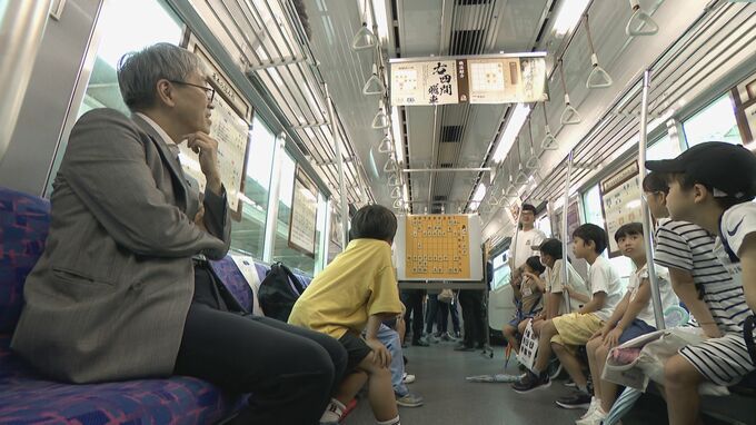 その後、終点の尾張瀬戸駅に到着するまで若手棋士による将棋教室が開催され、子どもたちは積極的に質問をしながら将棋の駒の動かし方などを学んでいました。