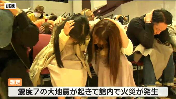 訓練はコンサート中に震度7の大地震が起きて、館内で火災が発生したとの想定で行われました。観客およそ200人がスタッフに誘導され速やかに外に避難しました。