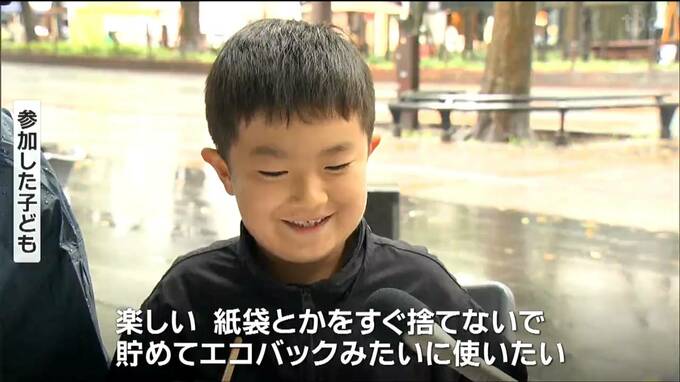 訪れた男の子「楽しい。紙袋とかをすぐ捨てないで貯めてエコバックみたいに使いたい」