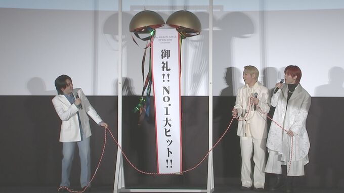 そして3人はくす玉を引いて大ヒットをお祝い。
