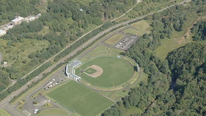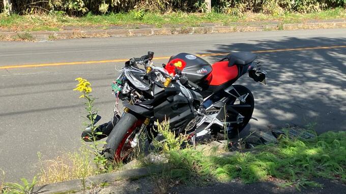 片側1車線の道路上に倒れた2台のバイク…23日午前11時ごろ、夕張市平和の「サングリンスポーツヴィレッジ」の野球場の出入口の近くの道道で「バイク同士が衝突している。けが人が2人いる」という救急通報がありました。