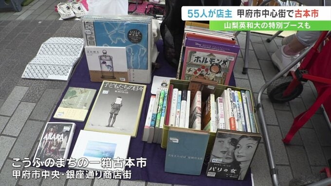 銀座通り商店街で行われたこの古本市は、一般の人たちが本の販売店になる催しで、今回は55人が出店しました。