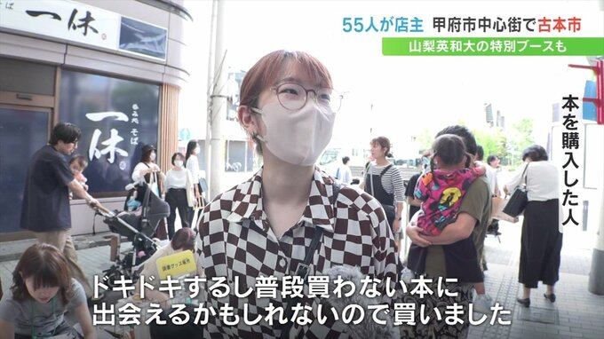 会場では山梨英和大学の学生も店を出しリボンでしおりを作る体験や、本のタイトルを隠し、学生が考えたその本に関係するメッセージを見て1冊を選ぶコーナーが人気を集めました。