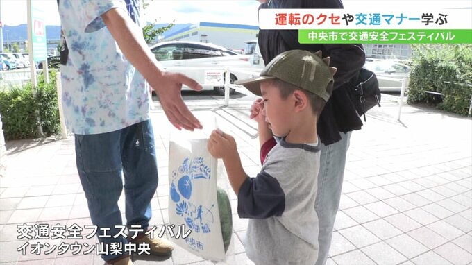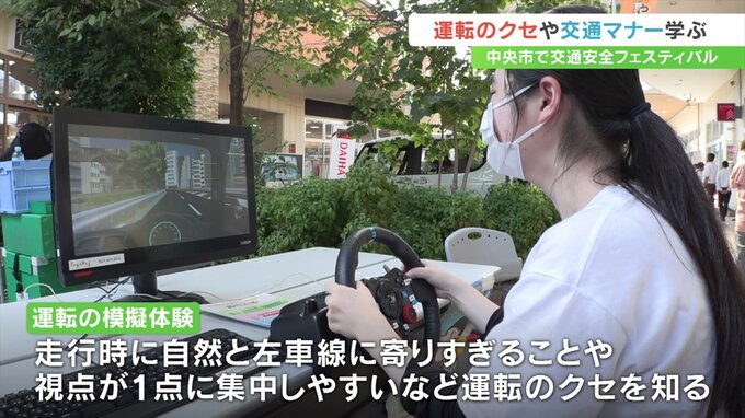 運転のクセがわかる体験や、自転車の運転マナーを学ぶイベントが中央市のショッピングモールで行われました。